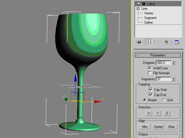 1、在前視圖中利用Line創建一個酒杯的半側基本形