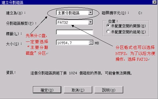 1、創建分區--創建C盤(主要分區)