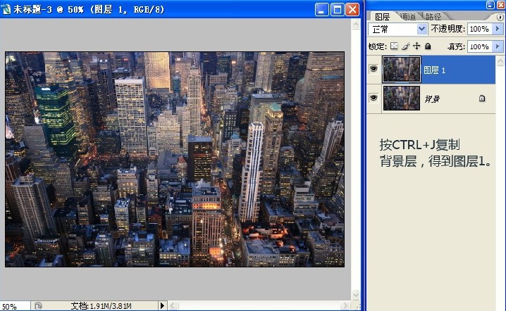 1.在Photoshop中打開原圖,按Ctrl+J復制背景層,得到圖層1。