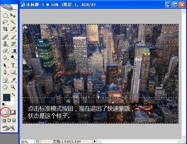 6.點擊“標準模式”按鈕,現在退出了快速蒙版,狀態如下圖。