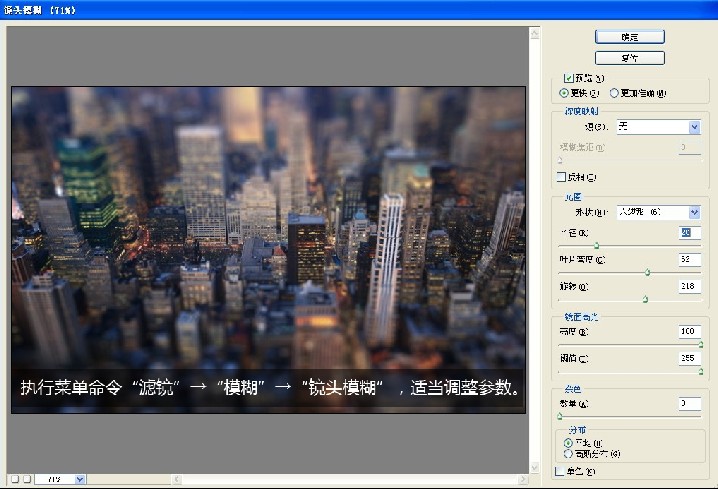 7.執行菜單命令“濾鏡”→“模糊”→“鏡頭模糊”,適當調整參數。
