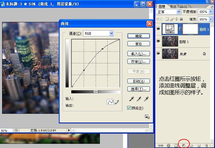 8.點擊紅圈所示按鈕,添加曲線調整層,調成如圖所示的樣子。