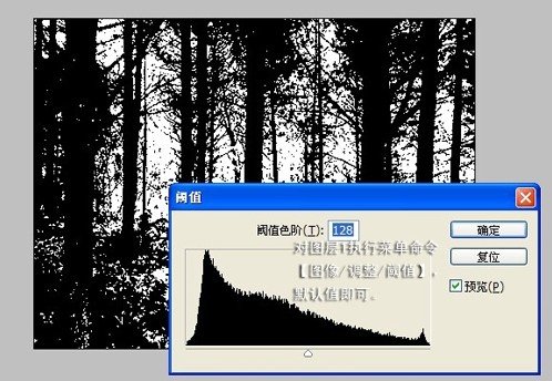 2.對圖層1執行菜單命令“圖像”→“調整”→“閾值”,默認值即可。