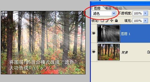 4.將圖層1的混合模式改成“濾色”,看出效果了吧?