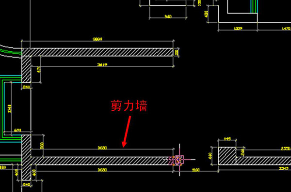 圖中黑色的部分就為承重墻。下面在給大家看一張cad施工圖(圖中陰影部分即為承重墻)