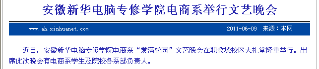 新華網訊 近日,安徽新華電腦專修學院電商系“愛滿校園”文藝晚會在職教城校區大禮堂隆重舉行。出席此次晚會有電商系學生及院校各系部負責人。