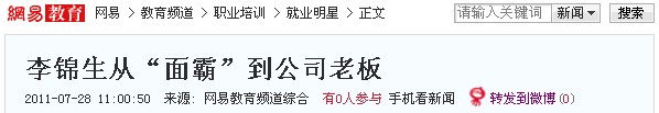 網(wǎng)易教育訊 2003年7月,大專畢業(yè)后李錦生在合肥找工作,一向成績不錯的他,雖然擁有學歷,但由于缺乏一技之長,在一次次的面試失敗后,幾乎成了“面霸”。那時的他第一次對自己的學歷感到了沮喪。回家后,看到愁眉不展的雙親,雖然也替他難過,可是他們還是在不斷的安慰他,鼓勵他。痛定思痛,一個月后,他終于想通了,決定去學習計算機,去追尋另一條通往成功的人生之路。