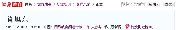 網(wǎng)易教育訊 肖旭東老師,1998年畢業(yè)于山東大學(xué)電子學(xué)與信息系統(tǒng)專業(yè),是安徽新華電腦專修學(xué)院計(jì)算機(jī)軟件開發(fā)、網(wǎng)站開發(fā)及運(yùn)營專家,科技金牌講師,軟件信息專業(yè)高級主講,有多年的國際軟件開發(fā)經(jīng)驗(yàn)和豐富的IT教學(xué)經(jīng)驗(yàn)。大學(xué)畢業(yè)之后,同年參軍進(jìn)入蚌埠坦克學(xué)院,擔(dān)任學(xué)院計(jì)算機(jī)技術(shù)首席講師,參與科研與教學(xué)工作。期間不僅獲得多項(xiàng)軍隊(duì)科技進(jìn)步獎,每年都被評為優(yōu)秀專業(yè)人士并獲得嘉獎。在蚌埠坦克學(xué)院工作六年,他不僅積累了豐富的項(xiàng)目研發(fā)經(jīng)驗(yàn),更主要的是軍隊(duì)生活鍛造了他鋼鐵般的意志。