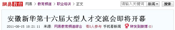 網易報道:安徽新華第十六屆大型人才交流會即將開幕
