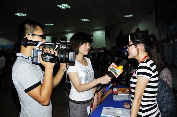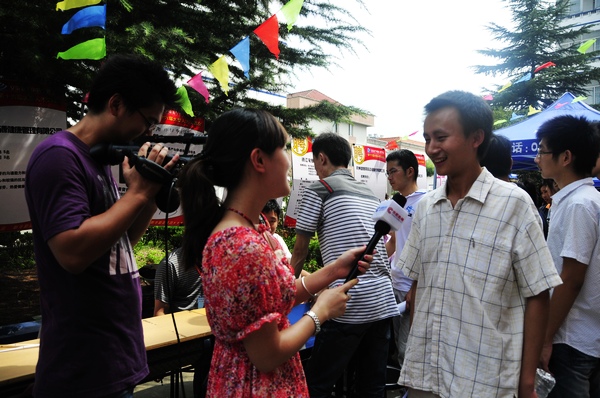 參加應(yīng)聘的學(xué)生接受合肥電視臺記者的 采訪