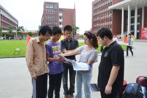 學(xué)院老師正在為學(xué)子們發(fā)放就業(yè)推薦表.