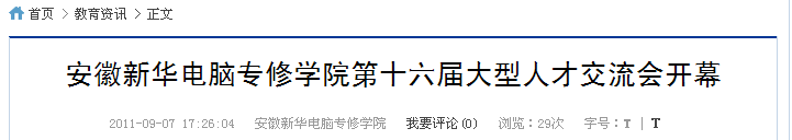 第十六屆大型人才交流會將于2011年8月16日在安徽新華電腦專修學院隆重開幕,屆時將有來自長江三角洲、珠江三角洲地區的200多家企業,為即將畢業的新華學生提供近1000多個就業崗位。新華每年一次的校園大型人才招聘會為企業和人才搭建出良好的交流平臺,使企業免去尋找實用人才的苦惱,也讓眾多畢業生順利走上工作崗位,找到適合自己發展的工作平臺。