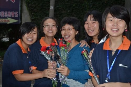 網易教育訊:2011年9月10日,在這秋高氣爽四處洋溢著收獲氣息的季節,第二十七屆教師節如約而至,安徽新華電腦專修學院內笑聲不斷,原來學生在教師節的當天自發站成一排,為辛勤耕耘的每位老師送上溫情的康乃馨,老師們臉上洋溢著幸福的微笑,教師節也彌漫著喜慶的氣息。