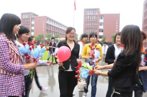 安徽新華電腦專修學(xué)院何貴金院長向老師們獻(xiàn)花