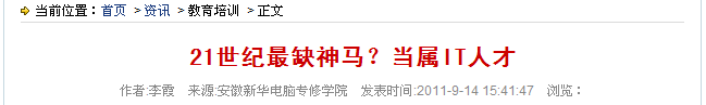 21世紀(jì)是信息的時代 ,IT應(yīng)用觸及社會每一個角落。 金融 、電信、 電子商務(wù)、歐美及對日軟件外包等行業(yè)和領(lǐng)域的迅猛發(fā)展 ,毋庸置疑會帶來專業(yè)軟件開發(fā)人才需求數(shù)量的大幅增長。同時隨著我國互聯(lián)網(wǎng)行業(yè)的全面復(fù)蘇以及網(wǎng)絡(luò)應(yīng)用在更高層次上的大規(guī)模展開,我國的網(wǎng)絡(luò)人才需求也在全新的層面上逐步呈現(xiàn)了出來。