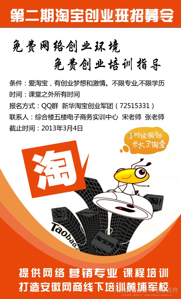 當前位置:首頁 > 新聞中心 > 學校新聞 > 第二期淘寶創業班招募令