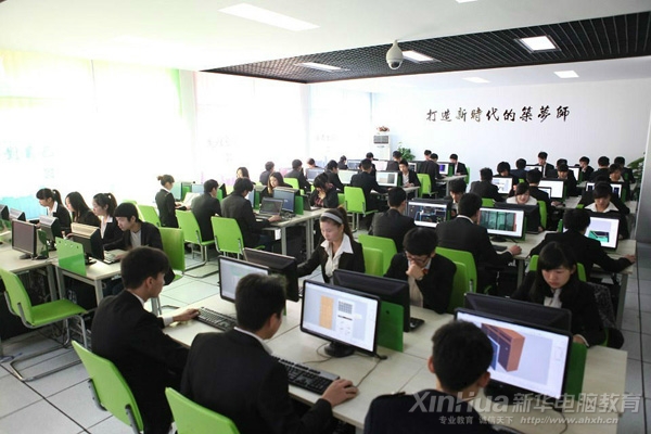 于是咨詢師帶著我把學校的環藝實訓室參觀了一遍,有樣板房、有材料展示廳,我還看到一群學長學姐在認真的作圖。看完之后我心里就更有數了,于是我就更有決心了。報了名之后又是學姐帶著我見了班主任,班主任見了我之后跟我講了學校的要求,什么是能做的、什么是不能做的。班主任帶我辦飯卡、領物資、去宿舍、鋪床、疊軍被、認教室,這些班主任都全程帶著我。包括晚上在實訓機房也是班主任陪著我們。那個時候我就懂得了安徽新華的那句廣告語的意思了“新華用愛與責任,發掘出你最精彩的一面”