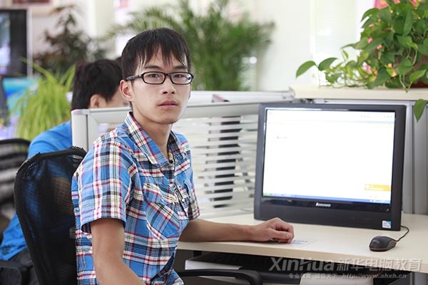 孫光濤今年20歲,來自安徽巢湖,之前曾在大學學習工程造價專業。但一個學期的大學生活,讓他覺得空洞乏味,無法學到真正的知識。于是,他毅然選擇了退學闖蕩,開始從事汽修工作。然而,一年半的汽修打工生涯,讓他覺得異常辛苦,尤其到了炎炎夏日,更是苦不堪言:每天都滿手機油、渾身污垢,還要頂著日曬雨淋,機械重復地勞作。后來他又從事了流水線工人等行業,但依然擺脫不了勞累困苦的處境。深思熟慮后,他決定去學習一門技能,用一技之長去改變自己的命運。經過一番對學校的考察和比較,他最終選擇了安徽新華電腦專修學院。他說:“通過比較,發現安徽新華無論是在品牌實力,還是教學水平上,都更有優勢。而且安徽新華的住宿費用便宜,還裝有空調,環境很好,伙食也很合胃口。”在新華里,他感受到了濃濃的學習氛圍,耳濡目染,受益匪淺。