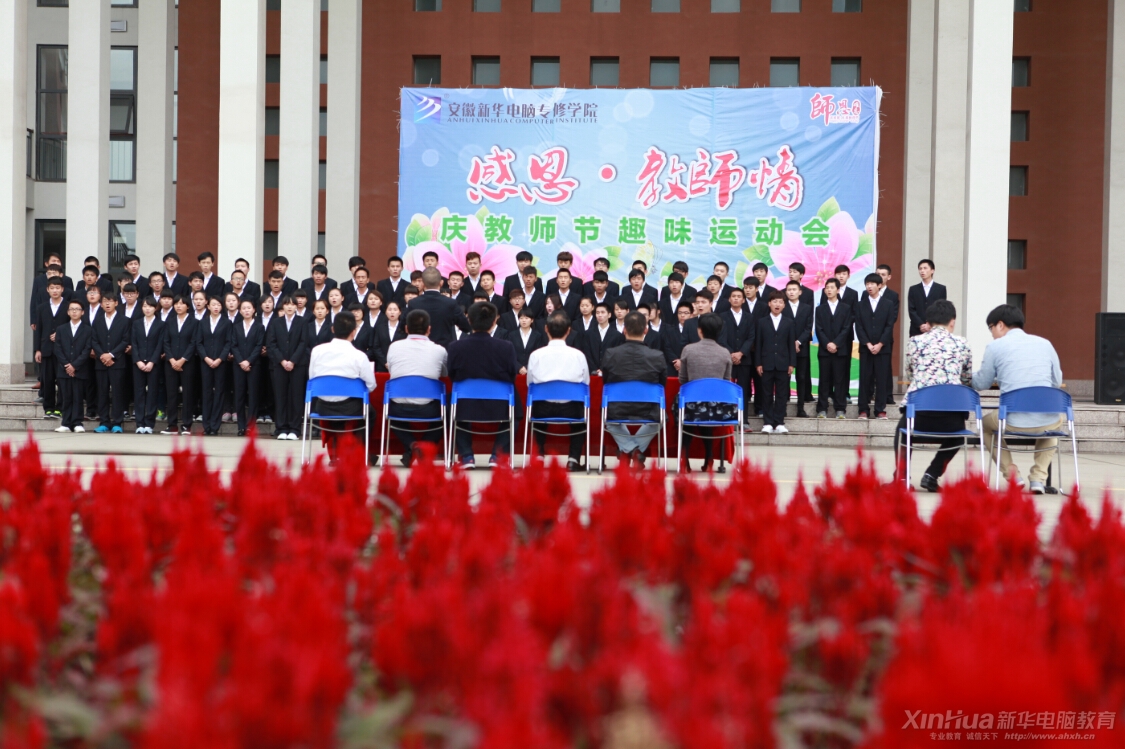 安徽新華電腦專修學(xué)院內(nèi),歌聲隆隆。整齊的隊(duì)列、鏗鏘的歌喉,校內(nèi)合唱大比拼在綜合樓前拉開(kāi)帷幕。整場(chǎng)比賽異彩紛呈,各系專業(yè)同學(xué)用自己的方式演繹著花季年齡的照人風(fēng)采。