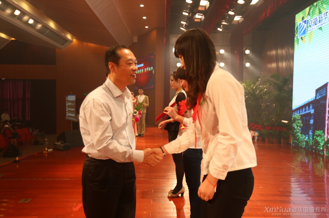 安徽新華電腦專修學院孫禮平副院長為城市有我奮斗的青春演講比賽獲獎學子頒獎