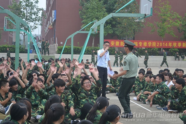 “我們考慮新生多數是想法新奇的90后,他們的一大特點就是喜歡隨性、新奇,對一些死板的東西會比較排斥。所以,我們在軍訓開始前,為了使軍訓能夠收到預期的效果,在形式上也做了很多改變,下了很大功夫”安徽新華電腦專修學院副院長孫禮平笑著說到。在此次軍訓中,安徽新華以突出學生和教官互動為主,用一些互動游戲增強軍訓的娛樂性和趣味性,讓學生在一種比較輕松愉悅的心情下達成軍訓的目的。像:個人軍歌對抗賽、班級對抗賽等互動強烈的活動形式,學生在這種環境中,愿意主動去表達自己,與同學打成一片,認識到團結的重要性,也同時為接下來的學習生活打下基礎。