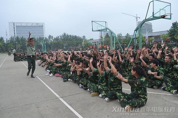 安徽新華電腦專修學院孫禮平副院長的溫情寄語帶給新同學莫大的精神鼓舞,他們急切的想在訓練場中展現自己的雄姿。“哈哈哈哈···”“冬瓜皮,西瓜皮,**班不唱耍賴皮”此起彼伏的呼喊與放釋情懷的開懷大笑在安徽新華電腦專修學院的訓練場來回傳遞。別開生面的軍訓,讓新生的臉上始終掛著燦爛的笑容。