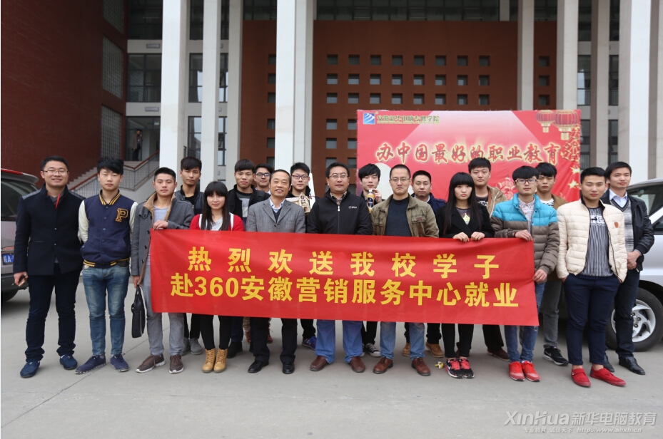 安徽新華電腦專修學院院長助理王科等一行領導歡送就業班學子赴360就業