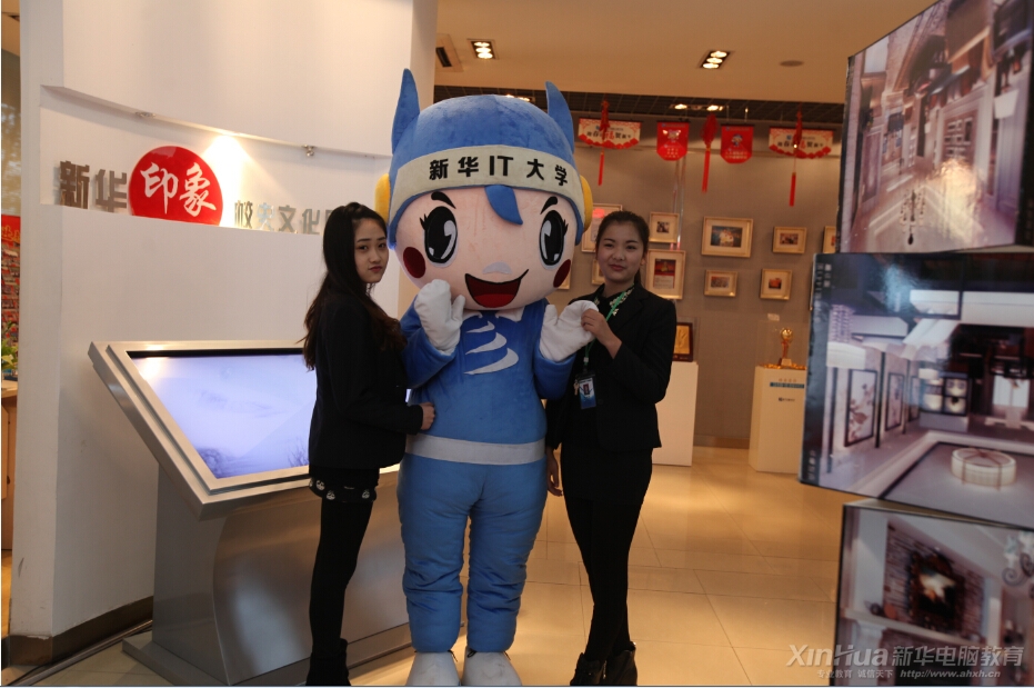 貼心可愛的新華電腦教育吉祥物“新新”、“華華”在報(bào)名現(xiàn)場(chǎng)迎接八方學(xué)子,為廣大報(bào)名學(xué)子送去祝福