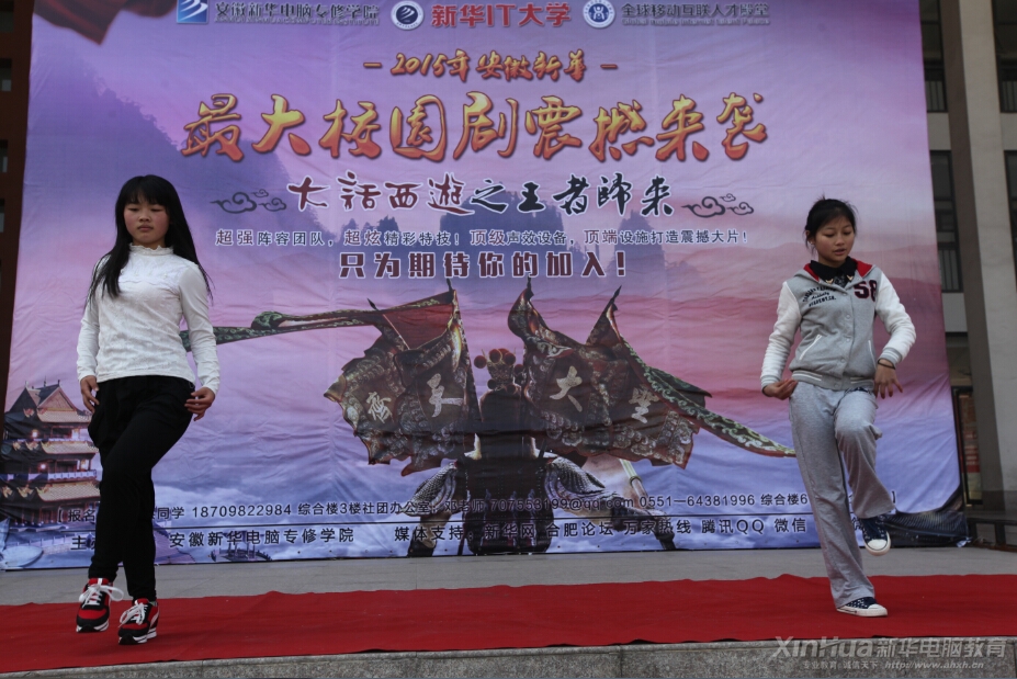 陽春三月, 陽光和煦。《大話西游之王者歸來》作為2015新華年度青春校園大戲,經(jīng)現(xiàn)場主持人深情并茂的介紹,讓我們知道:它是一部以浪漫搞笑的愛情故事、蕩氣回腸的劇情設(shè)計、場面恢宏的場景預(yù)設(shè)以及將最大限度的追求電影盛宴級效果的安徽新華電腦專修學(xué)院史詩級電影巨作!