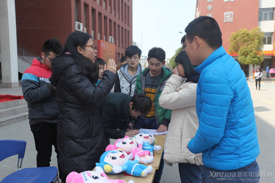 報名過程中,數(shù)百名學(xué)子細心詢問微電影演員報名的詳細信息,拿過報名表仔細瀏覽內(nèi)容,在咨詢老師和同學(xué)后,最終慎重地填好報名表交給工作人員。有的同學(xué)還專業(yè)地詢問微電影劇本方面的問題,希望給自己定位適合的角色。更有開朗的同學(xué)現(xiàn)場變影帝表演起周星馳的經(jīng)典段子,讓其他報名者開懷大笑。此外,活動主持人還和報名者們親密互動,送出了可愛的新新、華華毛絨公仔。