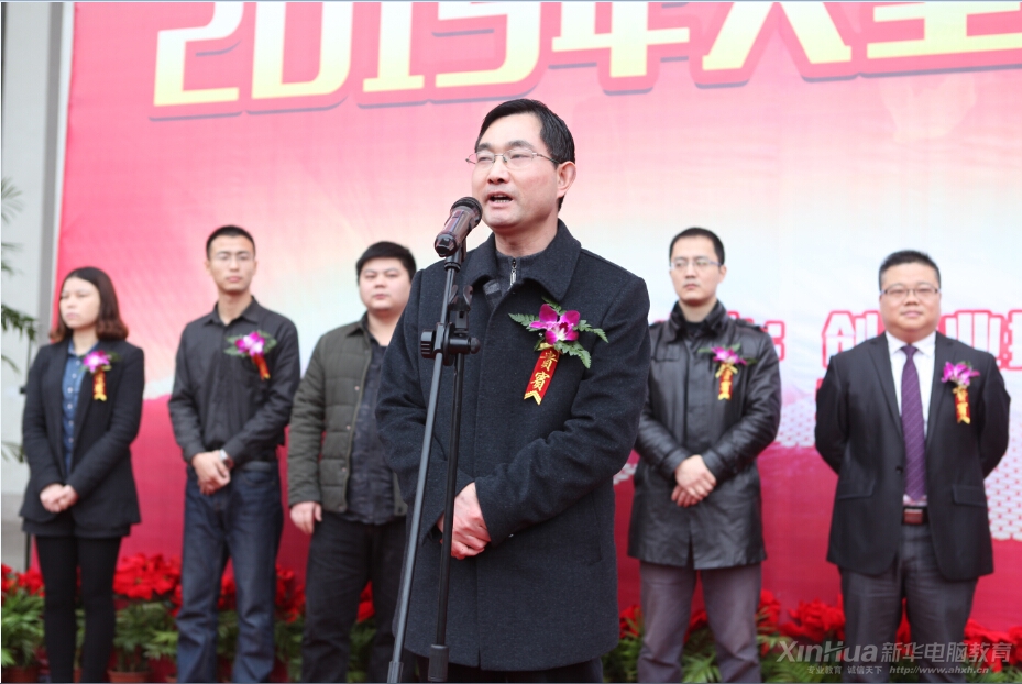 安徽新華電腦專修學院院長吳元紅在臺上發表重要講話