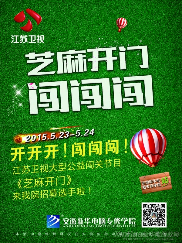 備注:江蘇衛視大型公益闖關節目《芝麻開門》重磅來襲,來我院挑選10組20人參賽團隊,如果你心動了,那么找到班主任,趕緊去報名!斗嘴賣萌全武行,報上名來才正題!報名截止:2015年5月19日!