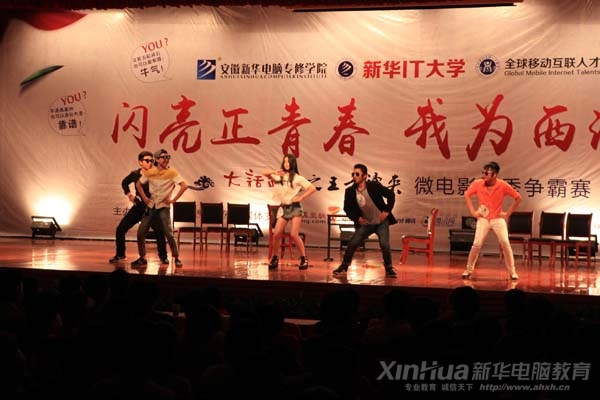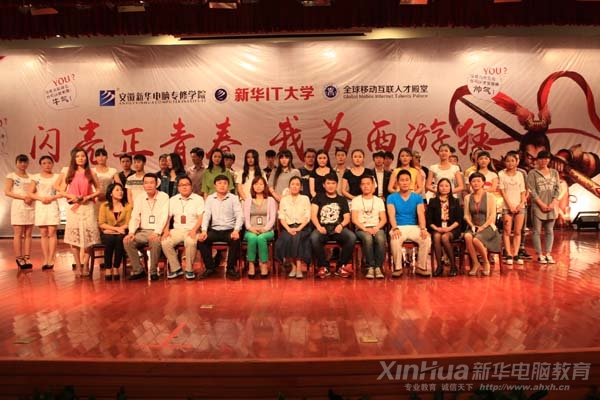 安徽新華電腦專修學(xué)院《大話西游之王者歸來》選角爭霸賽圓滿落幕,領(lǐng)導(dǎo)演員合影