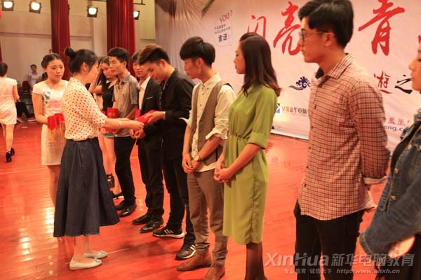 安徽新華電腦專修學(xué)院院長助理仇楊陽為正選演員頒發(fā)證書