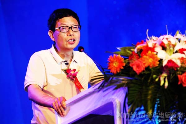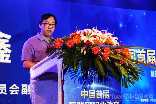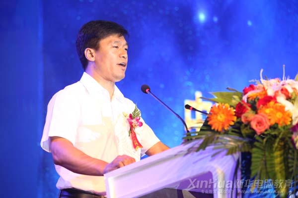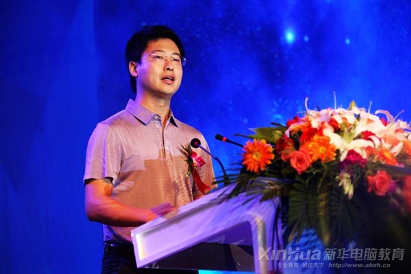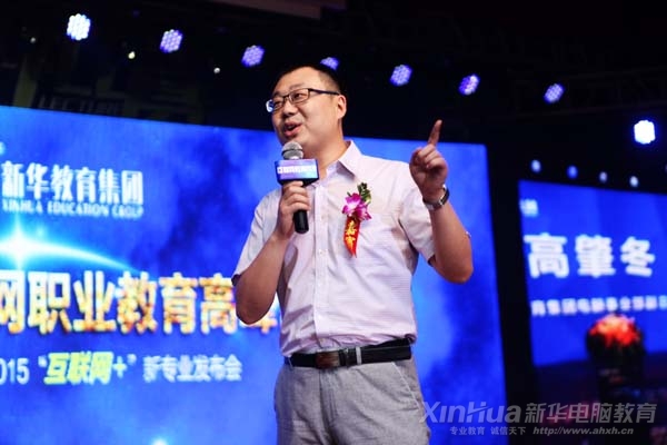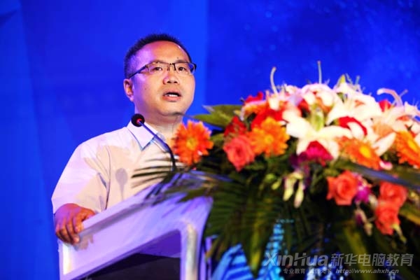 新華教育集團電腦事業(yè)部副總經理高肇冬進行新專業(yè)發(fā)布演說