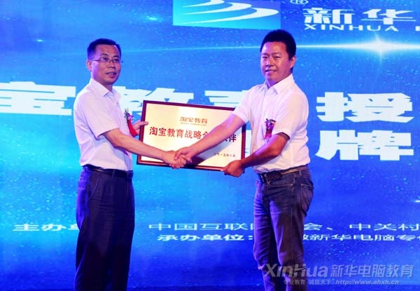 淘寶領導原一授予新華電腦教育為淘寶教育戰(zhàn)略合作伙伴牌匾