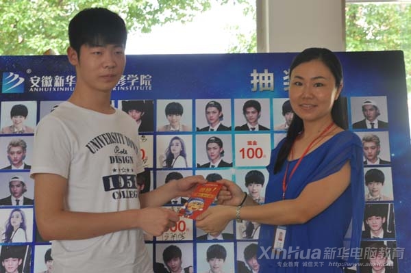 值得一提的是,報讀廣告傳媒專業的任佳樂同學放棄了自己親自抽獎的機會,記者事后了解到,原來任同學是讓自己的班主任代替自己抽獎,短短時間內,新生和班主任間建立起的深厚感情和信任離不開安徽新華“愛與責任”的人文關懷。班主任表示,學生這么相信我,我很榮幸,可是墻上的明星我只認識angelbaby于是就抽中了她,沒想到一下子抽中大獎,倒也沒有辜負學生的期望。據悉,當天報名并參與抽獎的幾十名學子都在報名的第一天抽中大獎討到了好彩頭,并和親切的吳院長合影留戀,制造了珍貴的回憶。