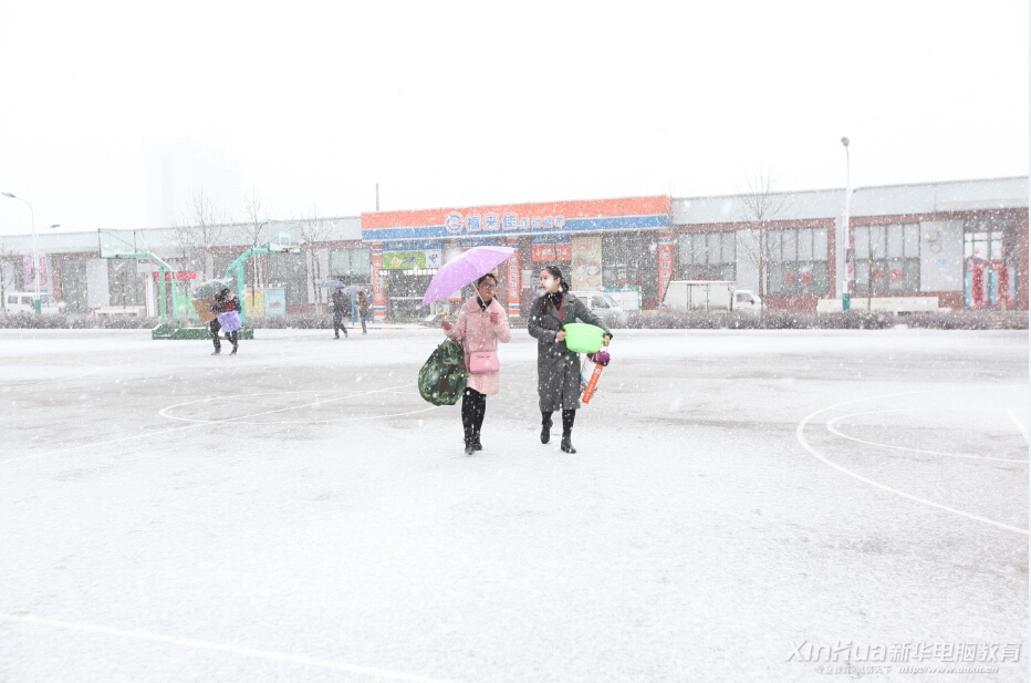 在大雪紛飛的校園里,處處都可以看見忙碌的班主任和開心的學(xué)生拎著大包小包的物資步履匆忙