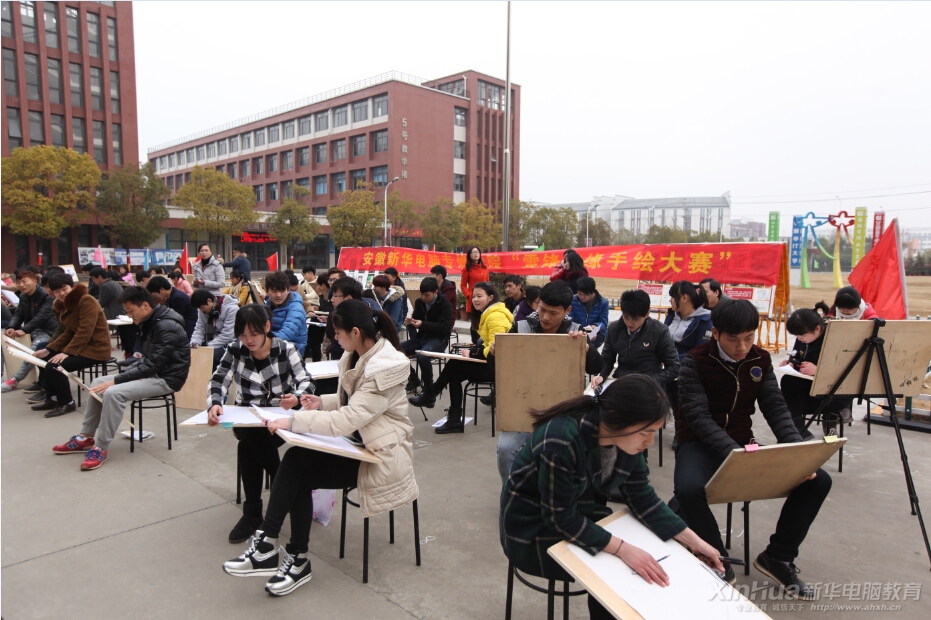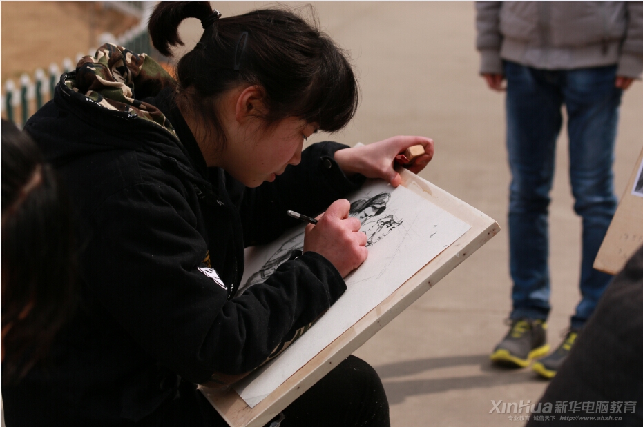 比賽開始前,五十多個同學手拿畫板、宣紙和工具箱,有序來到比賽場地并選好位置坐下,待老師做好參賽學生信息登記和相關參賽要求指示后,同學們便開始了比賽,一手拿著畫板,一手拿著素描鉛筆,時而勾勒線條,時而端詳著畫,又時而聚精會神的望著雷鋒,不肯放過一個細節。從觀察到分析,從構 圖到繪畫,每個環節都得心應手,令前來觀看的師生們嘖嘖稱贊。就在這一塊塊畫板上,由淺入深,細膩勾畫,全場的選手們就像置身在一場靈魂的洗禮中。
