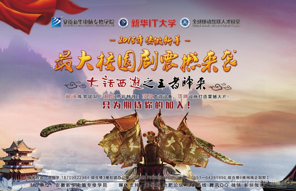 經過學院領導班子與學子們的傾心交流、深入學子內心了解到他們的所想所需之后,安徽新華電腦專修學院決定推出屬于新華學子自己的大電影。 旨在豐富廣大學子的校園文化生活,展示學子多才多藝的風采,表現我院學子獨特的個性和精神面貌, 因此意義非同一般。