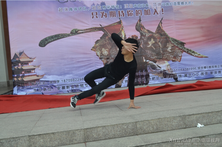“機會總是留給準備好的人”,如果你一直夢想做一名演員——那么現在機會來了!安徽新華電腦專修學院2015最大校園劇——《大話西游之王者歸來》震撼來襲,超強陣容團隊,超炫精彩特技!頂級聲效設備,頂端設施打造震撼大片!3月12日,在安徽新華電腦專修學院綜合樓前對公開招募的演員進行初賽海選,吸引眾多俊男靚女積極參與。現場演員各顯神通,上演一場“才藝大比拼”,氣氛火熱,評委探首,觀眾叫好。