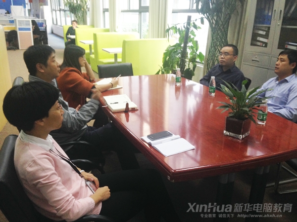 劉坤主任一行認真參觀并詳細咨詢了公司的流程,由衷的感嘆安徽一通先進的企業發展理念,在交流中,徐總監強調,公司非常注重人才的引進,重視人才使用上的機制創新,安徽一通愿意與安徽新華電腦專修學院合作,積極推動校企合作的項目建設,以便更好的實現企業和院校的雙贏。
