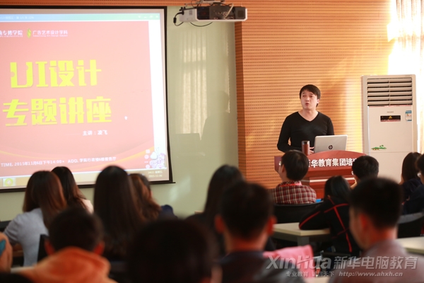11月6日,北京新方舟傳媒視覺主管凌飛先生蒞臨安徽新華電腦專修學院進行設計知識講座,現場氣氛融洽。