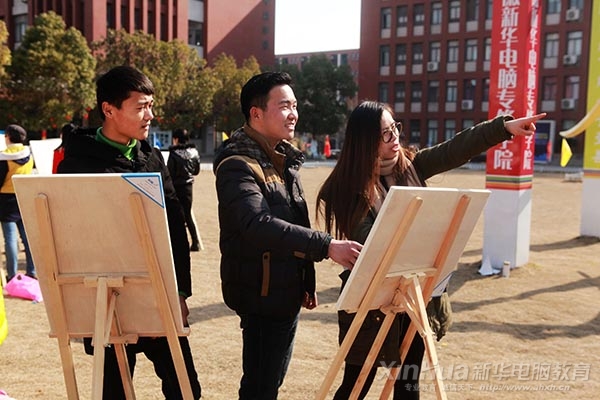 在美麗的安新校園內,更有一群朝氣蓬勃的新興學子們在揮舞手中的畫筆來綻放青春的才藝與笑顏、在老師的帶領下進行團體游戲、與新同學相互介紹成為朋友……他們是來自安徽新華電腦2016級各個專業的新生,在這樣一個陽光和煦的日子里,因共同愛好——繪畫,而聚集在安新的標志風景——《青春飛揚》雕塑下方,描繪校內或人、或花、或建筑物的各類風景……只見那新華IT大學、《青春飛揚》雕塑和朝氣蓬勃的學子們相映成輝,是這個美麗春天里一道亮麗的風景!筆者在現場采訪了幾位新同學,談談他們進入大學后的感想,“來到新華一周了,已經正式上課了,我們班老師跟我舅舅一樣,別看他上課很嚴肅認真的告訴我們要好好學專業,將來找好工作等等。一到下課老師就跟變了個人一樣,跟我們嘻嘻哈哈像朋友一樣!”“在新華好HAPPY!”……同學們紛紛發言好不熱鬧。