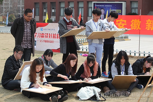 小編在人群中也發(fā)現(xiàn)了不少高顏值的實(shí)力派選手,咱們安徽新華真是臥虎藏龍。一張素紙,一根鉛筆,不一會,一張雷鋒的肖像就栩栩如生的躍然紙上,精雕細(xì)琢,反復(fù)修改,這不正是我們安徽新華學(xué)子追求的學(xué)習(xí)精神嗎? 反復(fù)鉆研,反復(fù)練習(xí),直到得到最完美的作品。