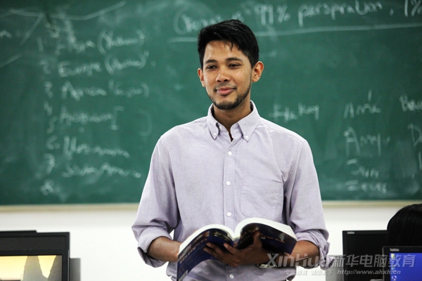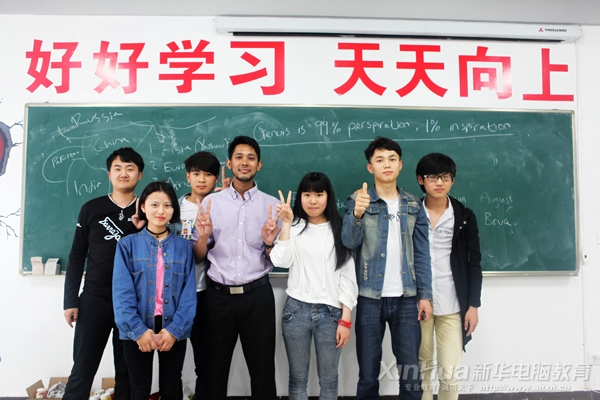 “Nabeel Rajub老師上課可生動(dòng)有趣啦,他不是很呆板的上課,會(huì)經(jīng)常和我們做些小游戲,還有獎(jiǎng)勵(lì)呢,你看這次獎(jiǎng)勵(lì)給我們糖果,他還說下次課堂表現(xiàn)好了會(huì)獎(jiǎng)勵(lì)巧克力呢!”動(dòng)漫15級(jí)的林姍姍同學(xué)提起Nabeel Rajub贊不絕口。聽了同桌評(píng)價(jià)Nabeel Rajub老師,劉欣怡同學(xué)也忍不住說“他會(huì)給我們講很多國(guó)外的奇聞趣事,還給我們介紹英國(guó)菜、印度菜等等,哦哦,對(duì)了,他還給我們看了他母親、姐姐等家人的照片呢!下課時(shí),還給我們展示他的雜耍絕活,感覺他和親切,當(dāng)然上課也是很負(fù)責(zé)任的,問我們想要了解學(xué)習(xí)什么,有什么樣的需要,然后他回去準(zhǔn)備一下。總之很喜歡這個(gè)老師。”