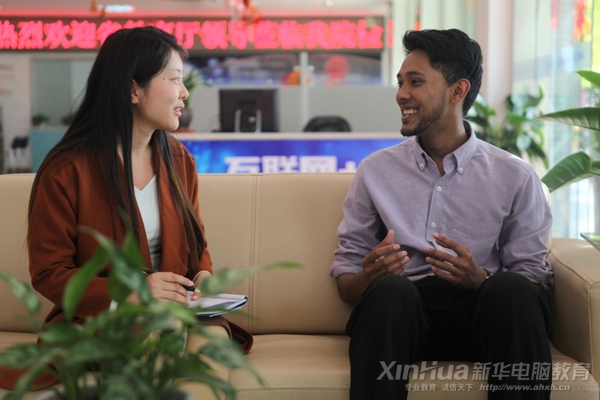 “The school is very beautiful and very modern,really very modern!”提及安徽新華電腦專修學(xué)院校園,Nabeel Rajub贊不絕口,他初次來安徽新華校園時(shí),參觀了學(xué)校的實(shí)訓(xùn)基地、創(chuàng)業(yè)中心,并且親身體驗(yàn)了學(xué)校的高科技感應(yīng)設(shè)備,很是贊嘆。第一次來的時(shí)候不由自主就拍了好多照片,后面分享給周圍的朋友看,朋友也都說學(xué)校很棒很現(xiàn)代化!