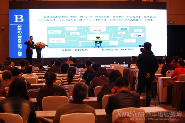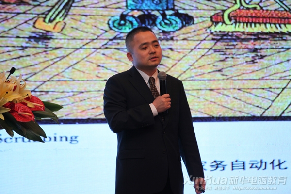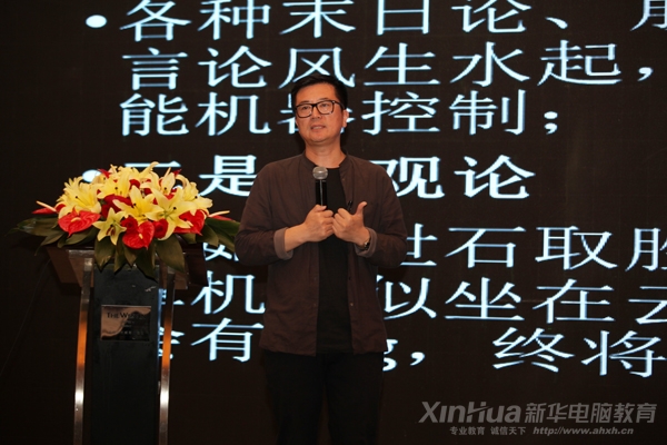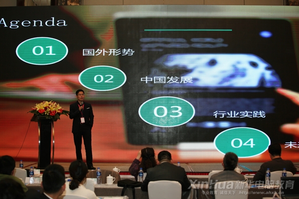 在這樣的互聯網+時代背景下,具有“教育”和“行業”雙重屬性的新華電腦教育處變不驚,從容應對,在新格局下,也做出了許多探索。高峰論壇上,新華教育集團副總裁沙旭對“利用互聯網平臺培養互聯網實用人才”發表了主題演講。從互聯網+任務驅動五步教學,提升教學效果;利用互聯網平臺,讓學生實踐到實戰;互聯網助推高端人才培養等三個方面詳細介紹了新華電腦教育在互聯網變革教育的新形式下完整的人才培養方案。