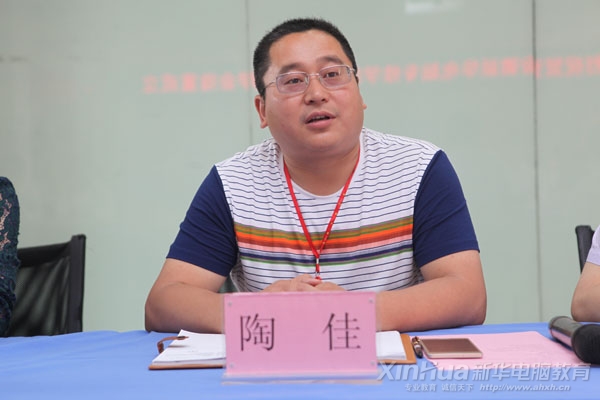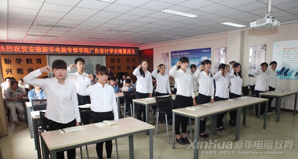 安徽新華電腦專修學院校區主任費群、教務處主任張凱星、藝術學院主任陶佳、學生處主管楊玲玲,以及廣告設計學會的發起人、指導老師單東軍均出席了此會。