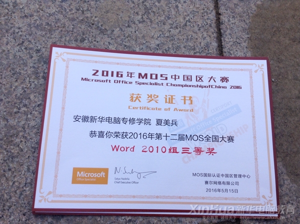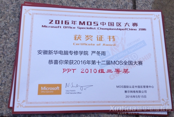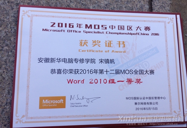 2016世界MOS大賽安徽新華學(xué)生部分獎(jiǎng)狀